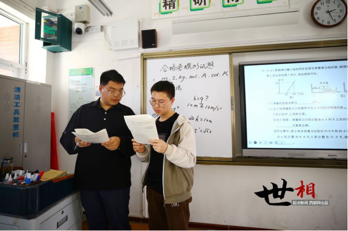 “上课!”“起立!老师好。”清脆的上课铃,打破了商洛市山阳县高二五班午后的宁静。讲台上,物理老师王梁宇正以饱满的精神状态,迎接学生们的问候。他是陕西师范大学第26届研究生支教团队长,自去年8月底来到这里,王梁宇便与学生们同吃同住,结下了深厚的师生情谊。