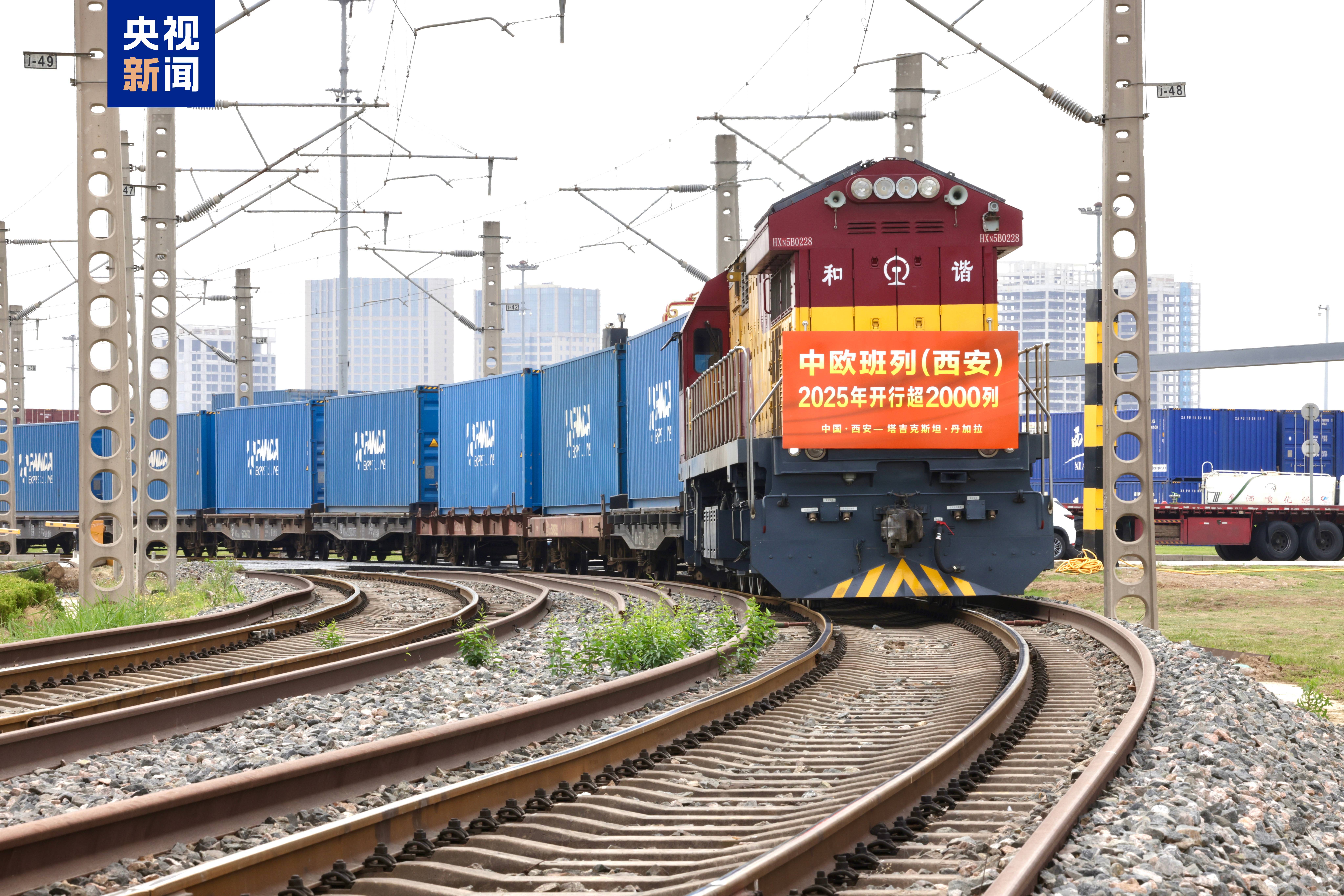 4月29日上午10点,随着嘹亮的汽笛声,一列满载着汽车、机械配件、家用电器等货物的X9043次中欧班列从西安国际港站缓缓驶出,一路向西开往塔吉克斯坦丹加拉。这标志着中欧班列(西安)2025年开行量超2000列。