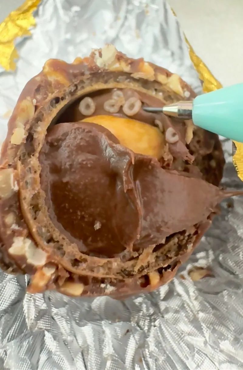 网友称在“费列罗”巧克力里发现“肉乎圆圈”不明物。