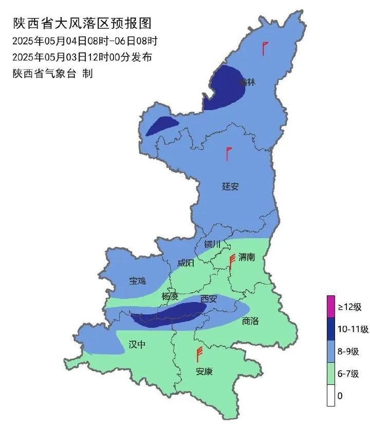 大风预报:4日陕北、关中大部、秦岭山区有5级左右(5.5~10.7m/s)偏北风,阵风7-9级(13.9~24.4m/s),局地10级(24.5~28.4m/s)以上。5日陕北、关中北部及东部、秦岭山区、商洛有4-5级(5.5~10.7m/s)偏北风,阵风7-9(13.9~24.4m/s)级,局地10级(24.5~28.4m/s)以上。