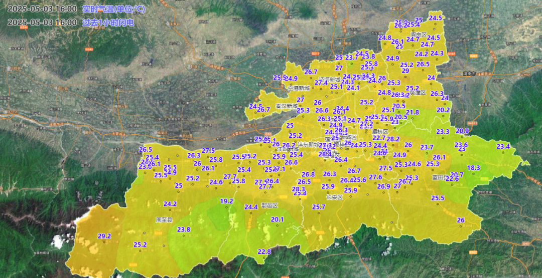 5月3日16时西安市气温实况色斑图