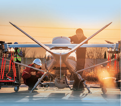 2025年1月,国内首个液氢驱动的吨级eVTOL无人飞行器在陕西凤翔高新区成功试飞。图为工作人员正在调试机身。资料图片