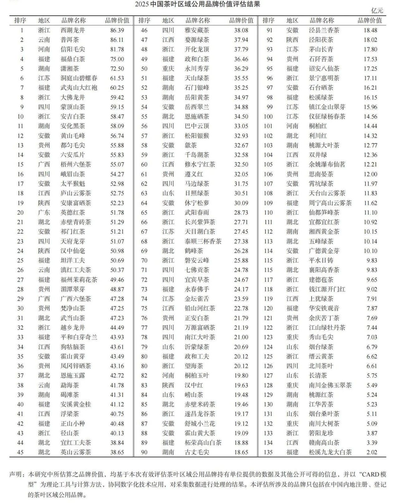 2025中国茶叶区域公用品牌价值评估报告发布,陕西四个品牌上榜,其中安康富硒茶52.23亿排名第19位,汉中仙毫50.98亿排名第24位,汉中红19.63亿排名第83位,泾阳茯茶18.02亿排名第92位!