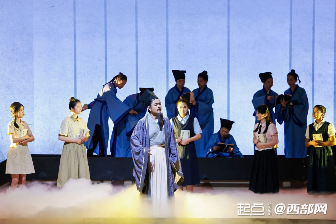 这部由陕西师范大学师生历时五年打造的原创剧目,通过四幕剧情与古今对话的创新形式,生动再现北宋大儒张载“为天地立心”的哲思历程,首演吸引800余名师生到场观看。
