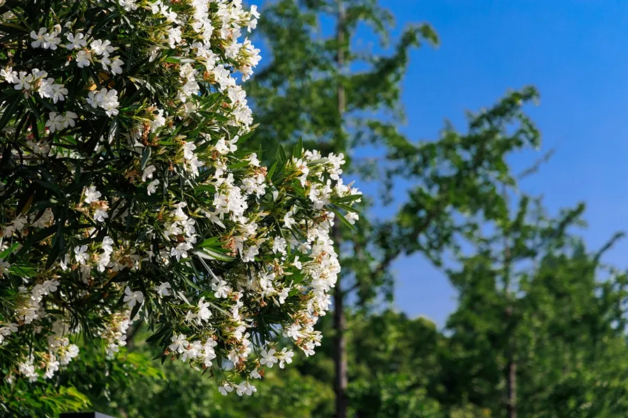 夹竹桃因其花艳丽、花期长、观赏性强,深受喜爱。它主要通过插条、压条的方式进行繁殖,植株极易成活,对土壤要求不高,凭借易萌芽、不挑剔的特征成为园林绿化植物中的首选。