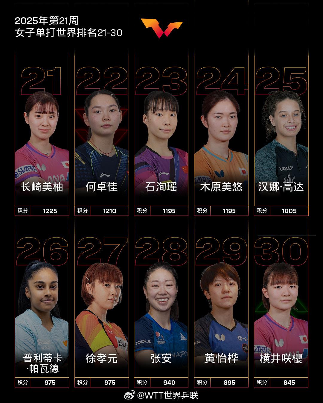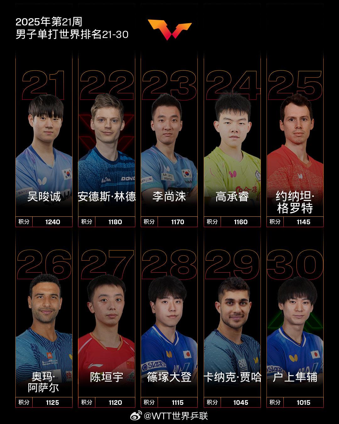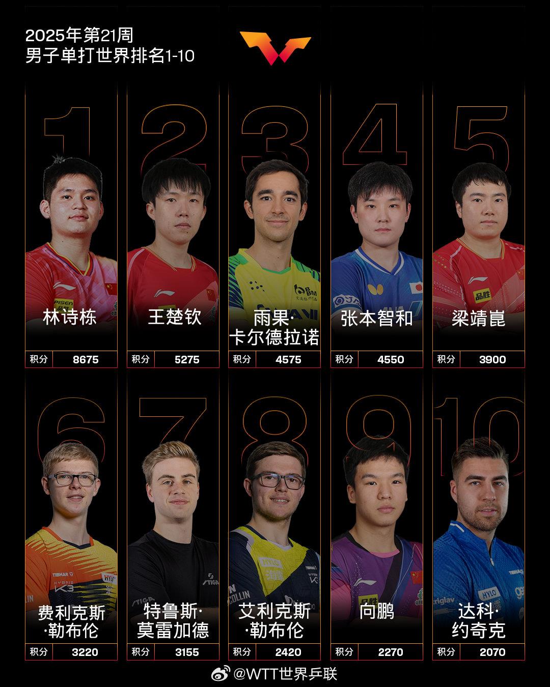 北京时间5月20日,国际乒联公布最新一期世界排名。