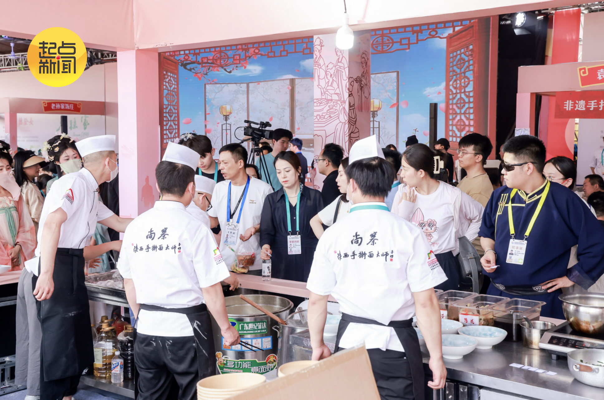 活动现场,“贾三灌汤包”“老孙家泡馍”“尚寨嫽扎咧油泼面”等知名美食品牌展位前人气爆棚。食客们不仅近距离欣赏大厨们一展身手,还在焦急等待中感受美食诞生的过程。西安贾三清真饮食有限公司执行董事贾瑞:“每次来我们也是推陈出新,比如说像油泼辣子,凉皮……比如说像现在马上进入端午节,我们又推出了粽子。”