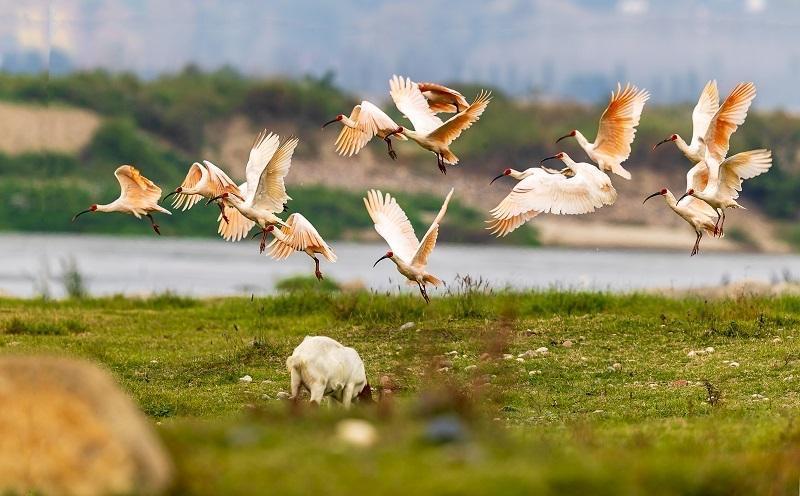 1981年5月23日,朱鹮在秦岭深处的洋县姚家沟被重新发现,经过44年的保护,朱鹮数量由最初发现时的7只到现在1万多只,分布面积从不足5平方公里扩大到1.6万平方公里。朱鹮保护以凤凰涅槃般的重生奇迹,谱写了举世瞩目的生态保护篇章,被赞誉为“拯救世界濒危物种的‘中国方案’”。