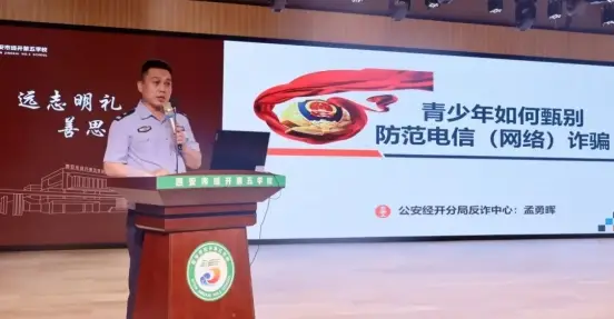 活动中,民警结合真实案例,深入剖析了针对青少年群体的“不明链接”诈骗、“虚假购物”诈骗等常见的诈骗类型,并强调了“不轻信、不转账、不泄露”的“三不”防骗原则。