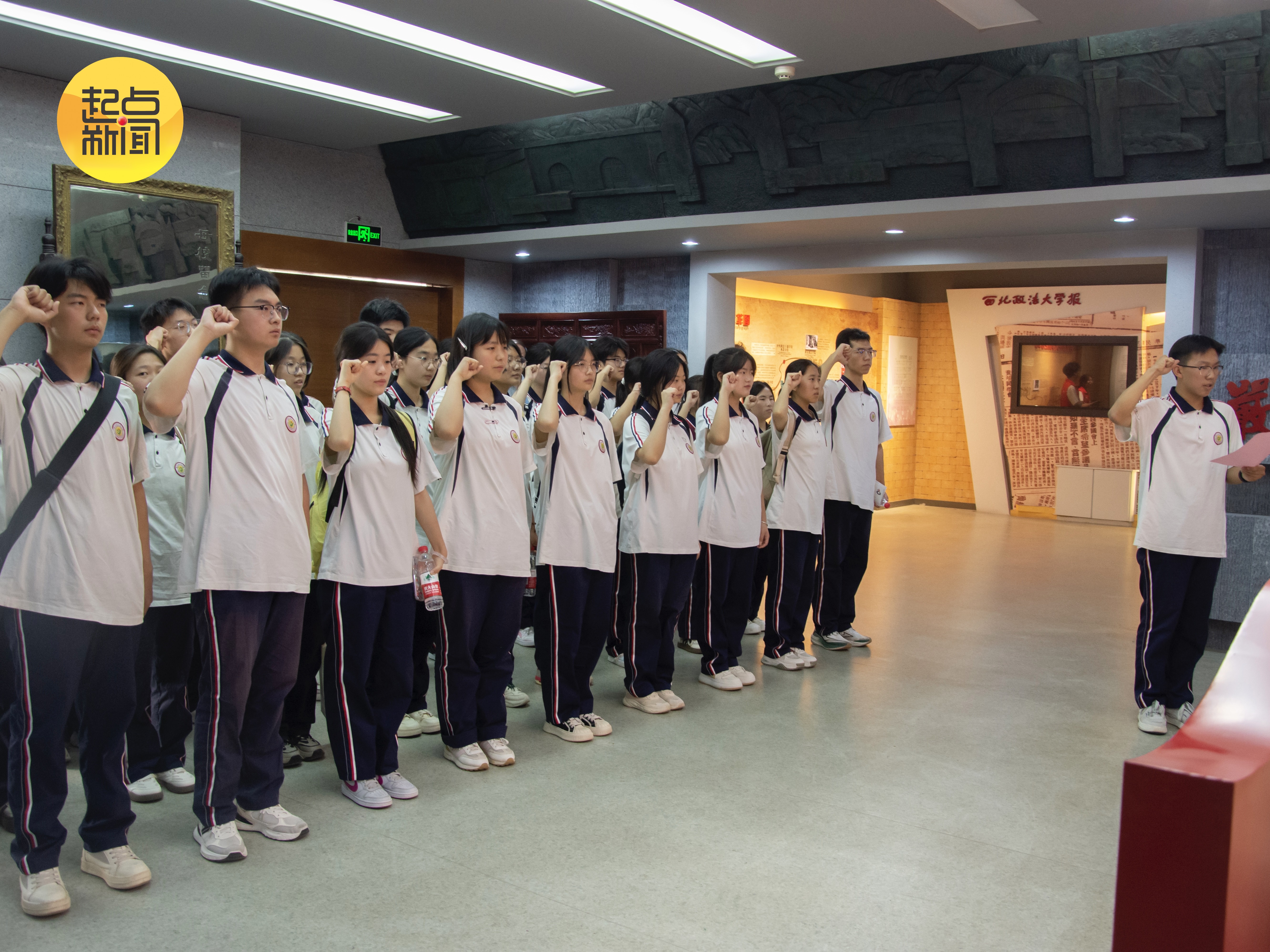 “我宣誓:忠于中华人民共和国宪法……为实现中华民族伟大复兴中国梦努力奋斗!”清晨9点,学校校史馆内传来庄严的宣誓声。跟随讲解员的脚步,同学们仿佛穿越回那段烽火岁月,真切感受到这座“红色学府”的深厚底蕴。随后,大家一起参观张汤墓遗址陈列馆,在这个传统法治智慧与现代法治精神的对话场域,感受中华法治文明的悠久脉络,思考法治文明的古今嬗变。