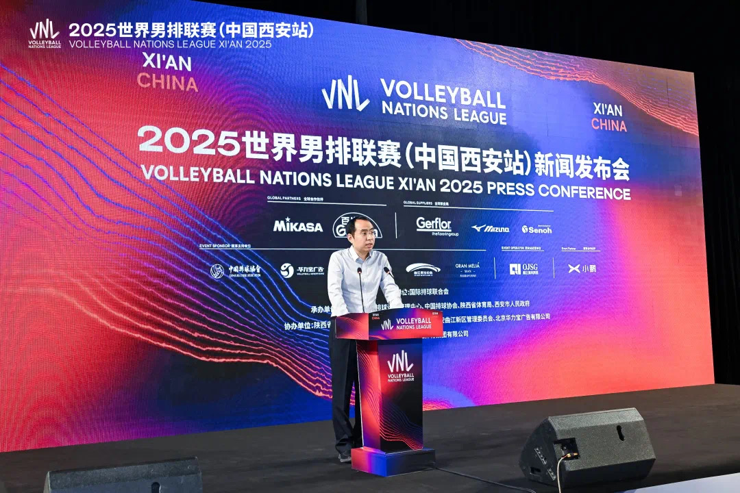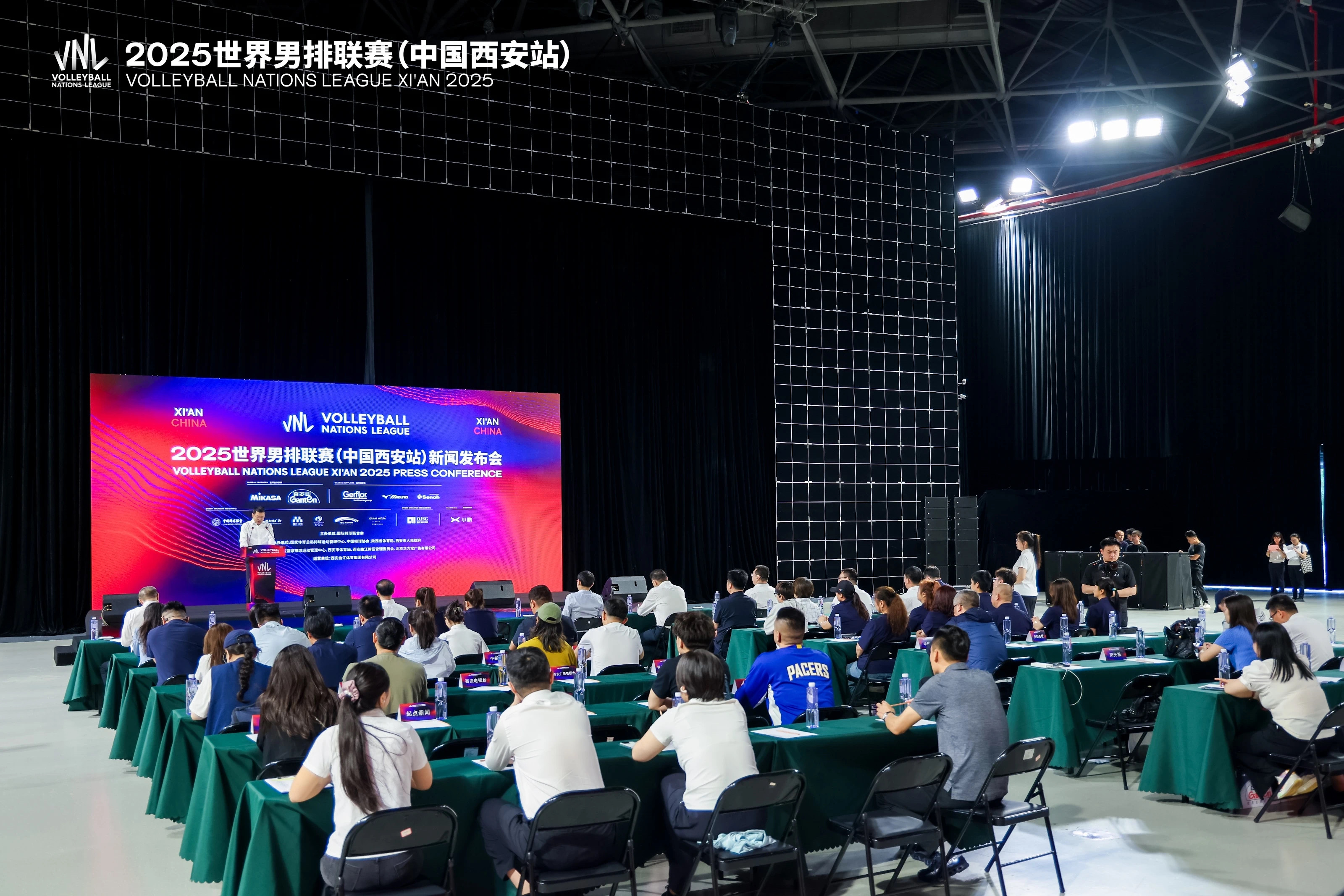 6月3日上午,2025世界男排联赛(中国西安站)新闻发布会在曲江竞技中心召开,新闻发布会上,组委会对比赛信息进行全面发布,对赛事筹备情况进行简要介绍。