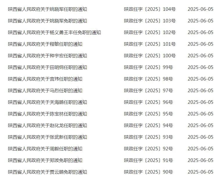 陕西省政府发布一批人事任免