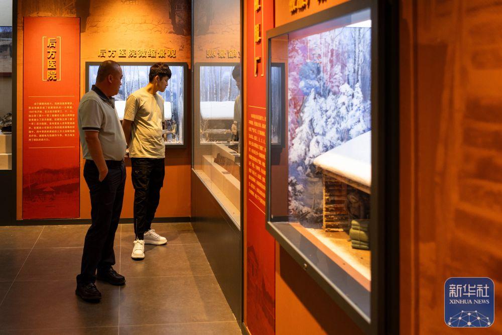 ↑ 6月17日,游客在七星山国家森林公园内的集贤县红色抗联体验馆参观。
