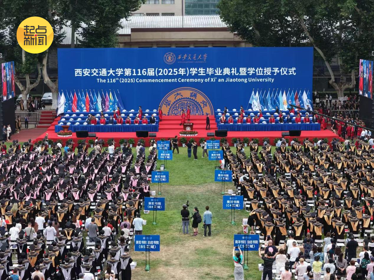 6月19日,西安交通大学举行2025年本科生毕业典礼暨学位授予仪式。4847名本科毕业生从此启程,踏上新的人生篇章。起点新闻·西部网记者了解到,截至6月18日,西安交大2025年本科毕业生共计4847名(含223名国际学生)。其中,选择国内外继续深造的毕业生共3432人,深造率达74.2%;直接就业的本科生中,进入党政机关、世界500强企业、国家级科研机构等重点单位占比超40%。
