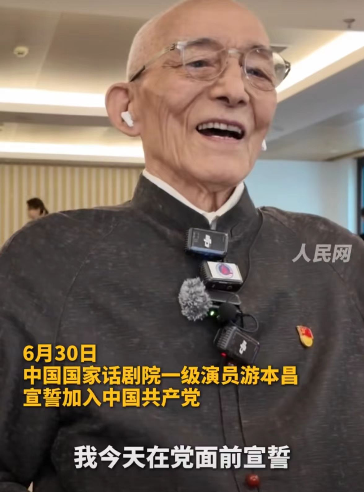 92岁中国国家话剧院一级演员游本昌 宣誓入党