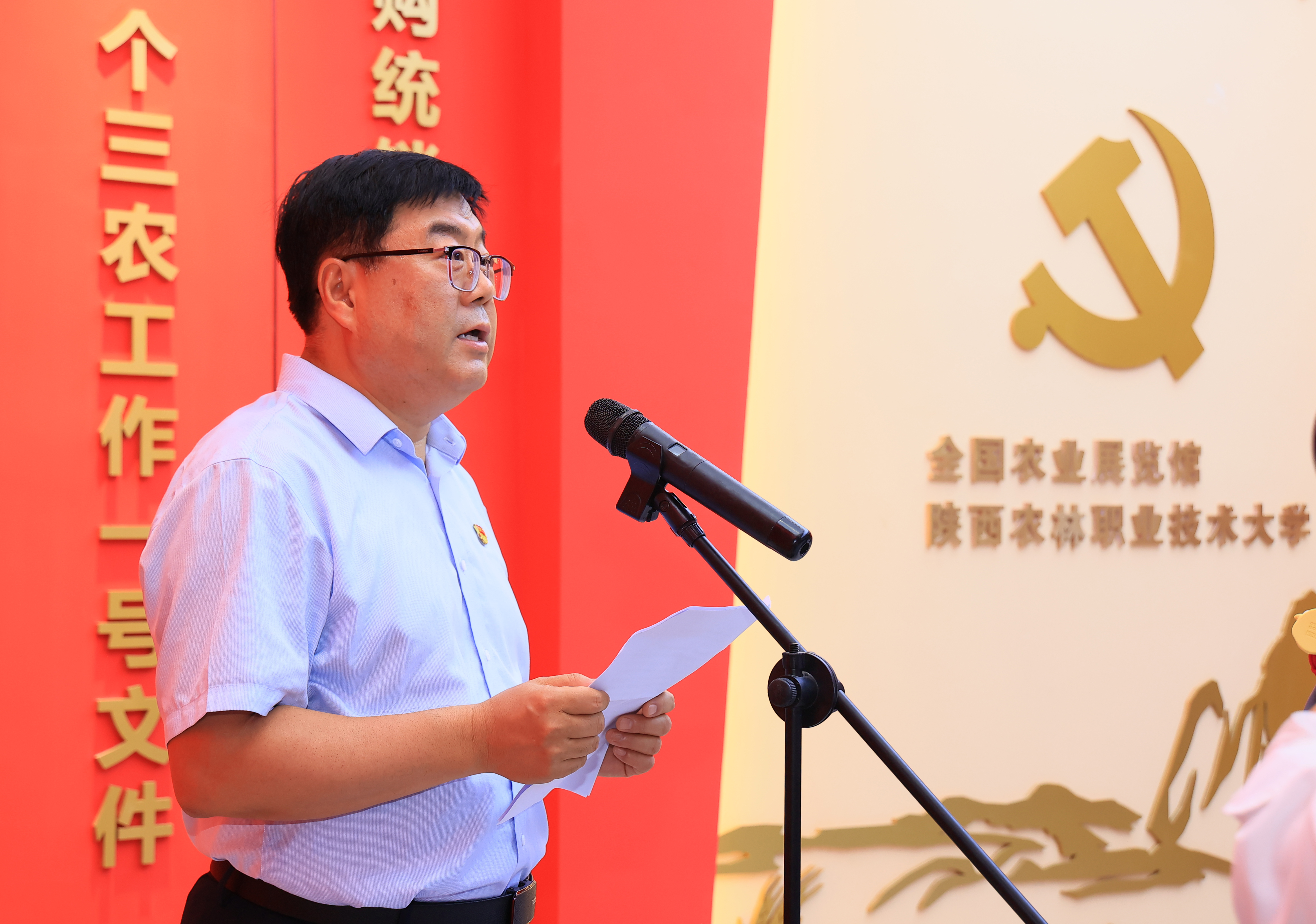 6月30日上午,百年伟业·红色三农研学馆开馆仪式在陕西农林职业技术大学农林综合实训基地举行。杨凌示范区党工委书记史高领,省委农办副主任、省农业农村厅副厅长陈文,杨凌示范区党工委委员、管委会副主任张小明,西北农林科技大学党委副书记庄世宏,陕西农林职业技术大学党委书记韩明军、校长仲伟周、全国农业展览馆(中国农业博物馆)当代农业研究部主任杨卫东等出席开馆仪式。开馆仪式由陕西农林职业技术大学党委副书记刘瑞明主持。