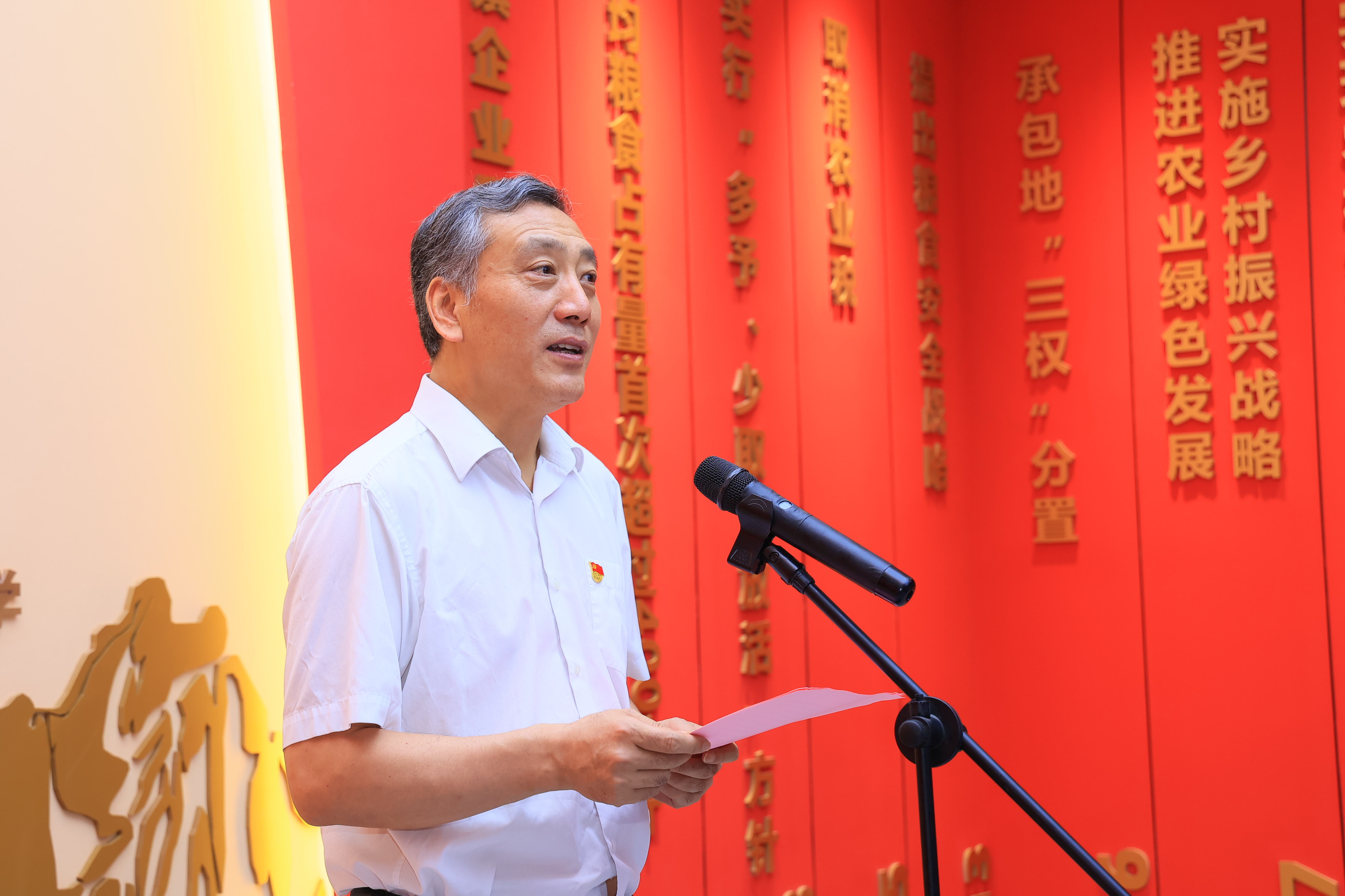 韩明军在致辞中指出,建设百年伟业·红色三农研学馆是学校深入学习贯彻习近平总书记关于“三农”工作重要论述、创新作为勇挑“三农”人才培养使命重担的重要体现。他表示,学校以研学馆为平台,教育引导广大师生和党员干部深入了解中国共产党解决“三农”问题的光辉历程,从中厚植“三农”情怀,守牢职教报国初心,勇挑强农兴农重担,汲取智慧,凝聚力量,坚定信心决心,积极投身乡村振兴实践,助力农业农村现代化,为农业高质高效、乡村宜居宜业、农民富裕富足作出新的贡献。