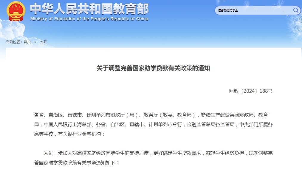 去年,教育部等四部门发布《关于调整完善国家助学贷款有关政策的通知》,明确自2024年秋季学期起↓