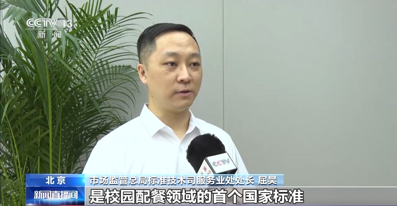 市场监管总局标准技术司服务业处处长 屈昊:标准明确了覆盖食谱及原料管理、加工制作、备餐与配送、用餐服务、服务评价改进、应急处理等全链条的规范指引,为校园配餐服务企业的合规管理提供标准化指导。