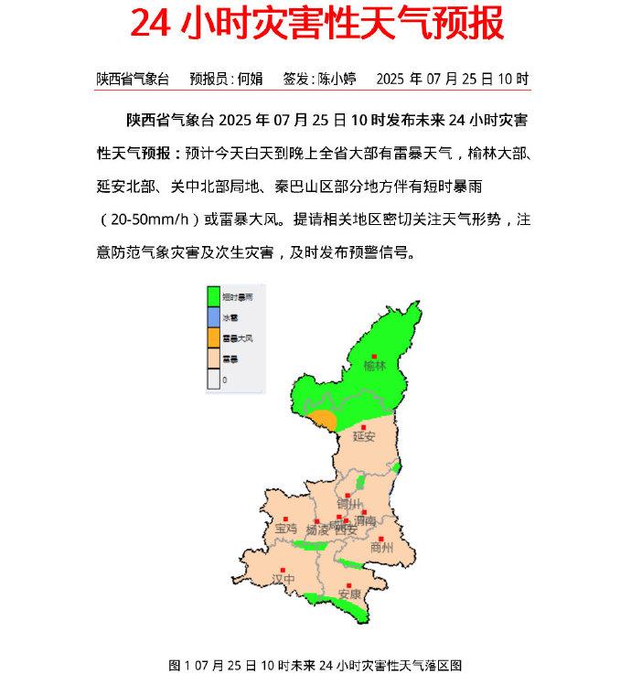 全省大部有雷暴天气!陕西发布未来24小时灾害性天气预报