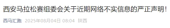 近期,2025西安马拉松赛组委会(以下简称“组委会”)监测到网络平台及社交媒体渠道中出现高价倒卖参赛名额、恶意传播虚假信息的行为。此类行径严重破坏赛事秩序,侵害跑者正当权益,损害赛事公信力。为维护赛事公平、保障跑者利益,组委会声明如下: