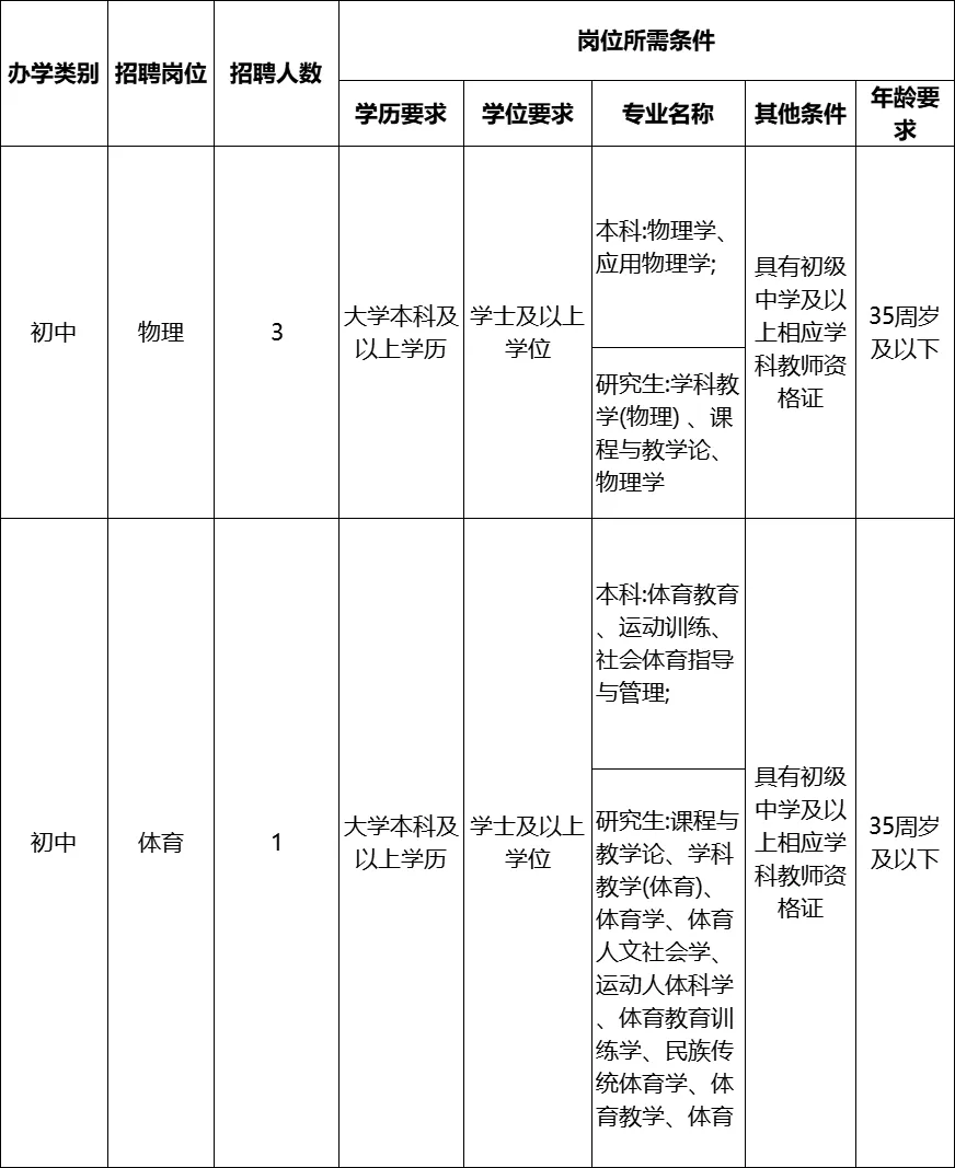 2.男教师年龄45周岁以下,女教师年龄40周岁以下。
