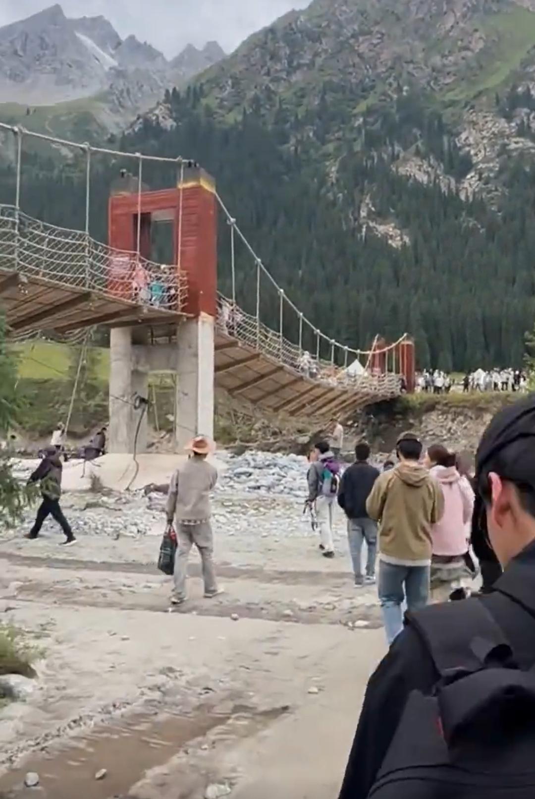 新疆吊桥断裂致5死24伤,亲历者称桥右侧钢索断裂