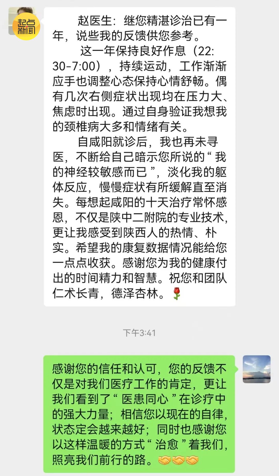 近日,陕西中医药大学第二附属医院推拿科主任赵盼盼收到了一封来自浙江的患者王女士发来的“康复感言”。