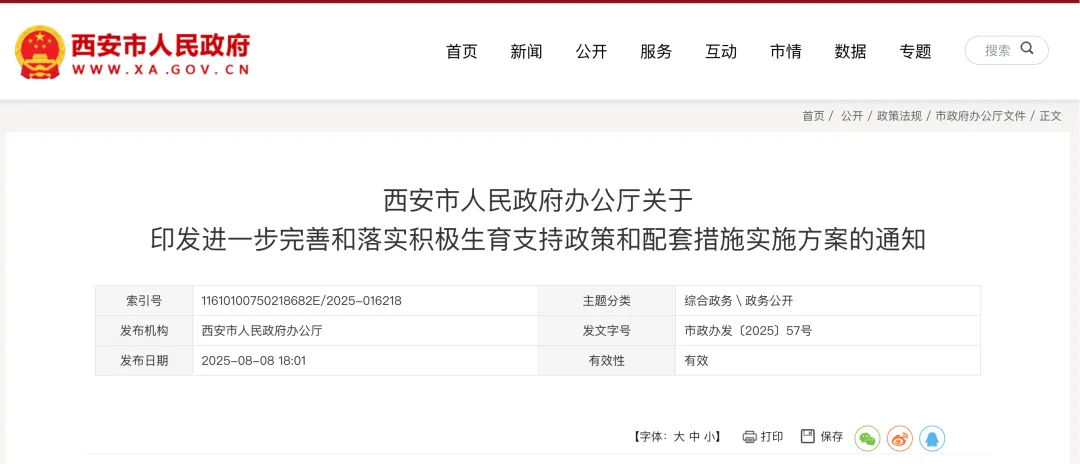 西安市进一步完善和落实积极生育支持政策和配套措施实施方案