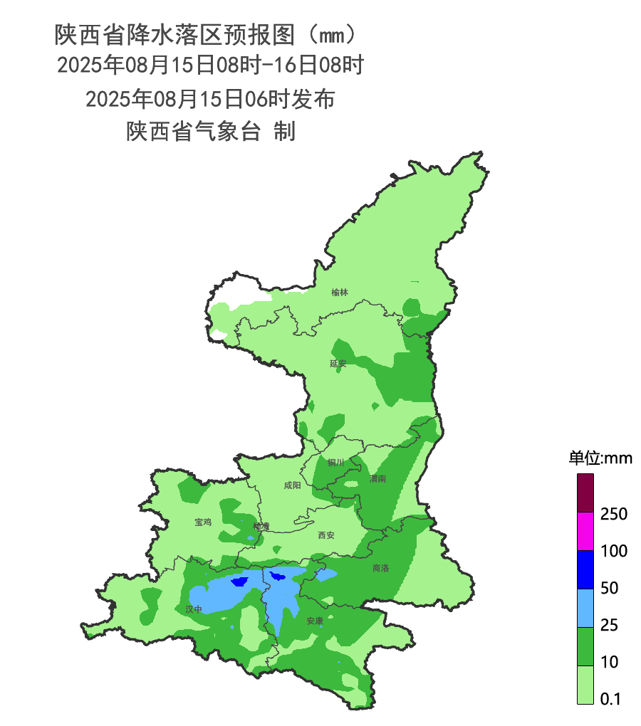 16日:陕北多云,关中、陕南多云间阴天。陕北北部、关中西部有分散性小雨或阵雨(0.1~10毫米),陕北南部、关中东部、陕南有中到大雨(10~50毫米),部分地方有暴雨(长安区、汉台区、洋县、勉县、西乡县、镇巴县、佛坪县、汉阴县、石泉县、宁陕县、紫阳县、岚皋县、商州、洛南、镇安县、柞水县)(50~100毫米)、局地大暴雨(西乡县、石泉县)(100~150毫米)。陕北有4级(5.5~7.9米/秒)左右偏南风,关中东部有4级(5.5~7.9米/秒)左右偏东风,阵风可达6级(10.8~13.8米/秒)以上。