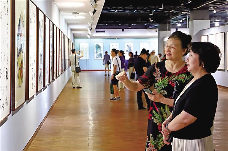 8月27日,纪念中国人民抗日战争暨世界反法西斯战争胜利80周年陕西省慈善书画展在西安开幕。图为群众参观展览。