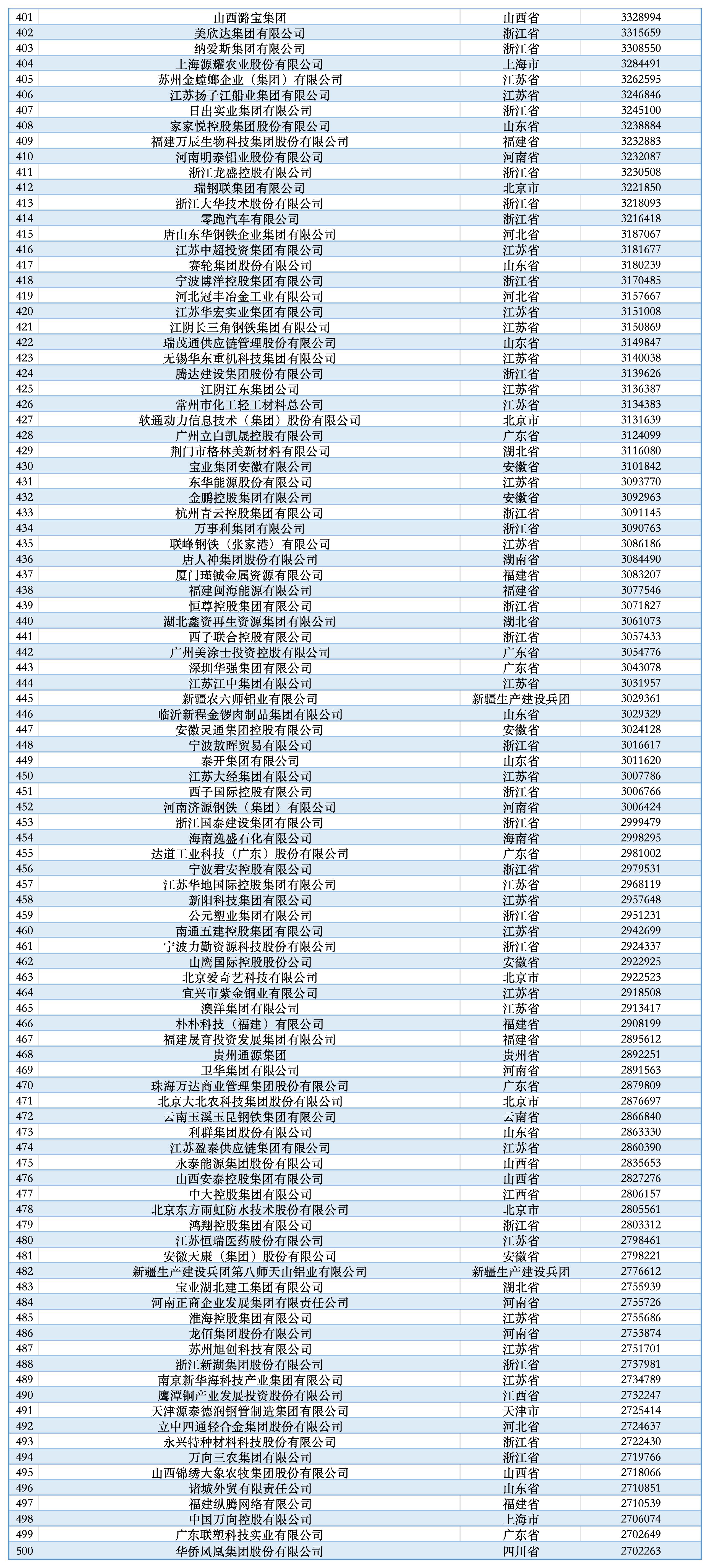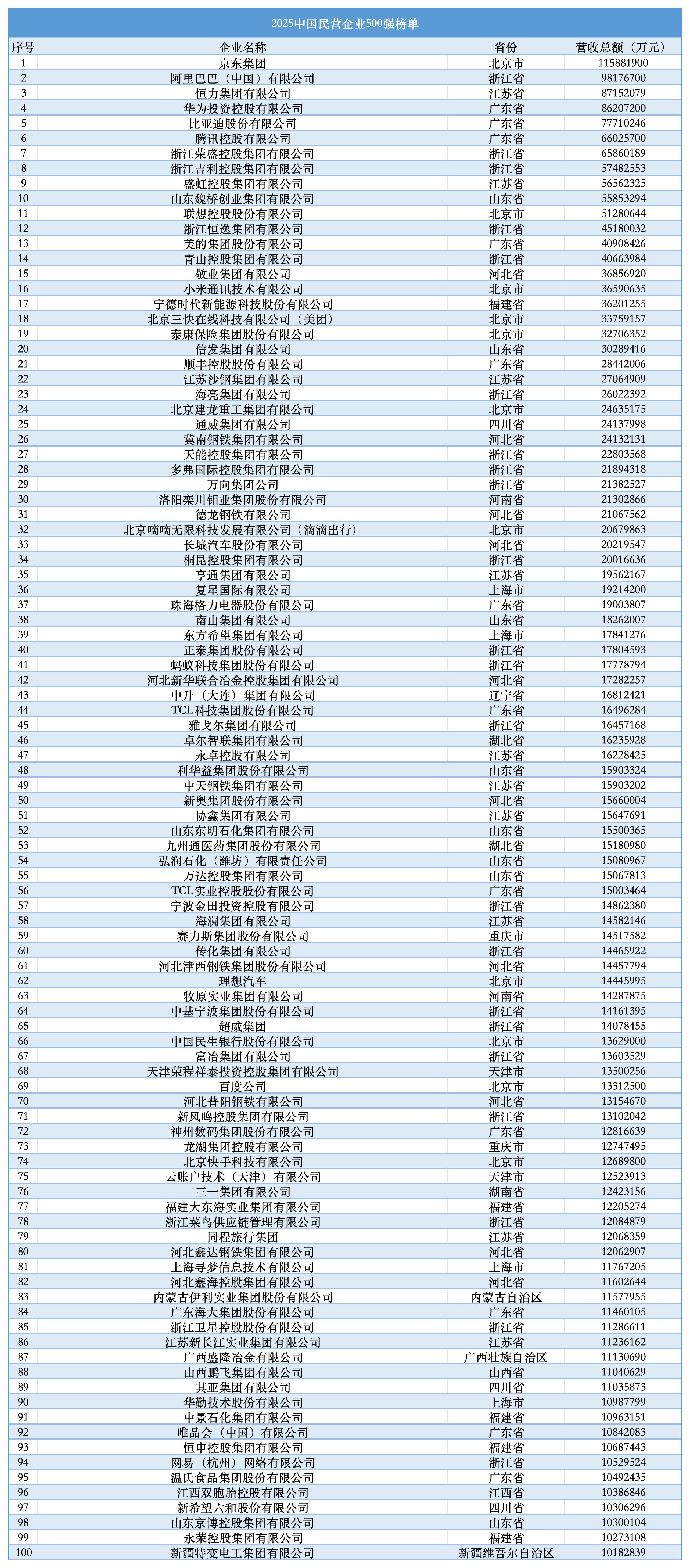 2025中国民营企业500强详细名单