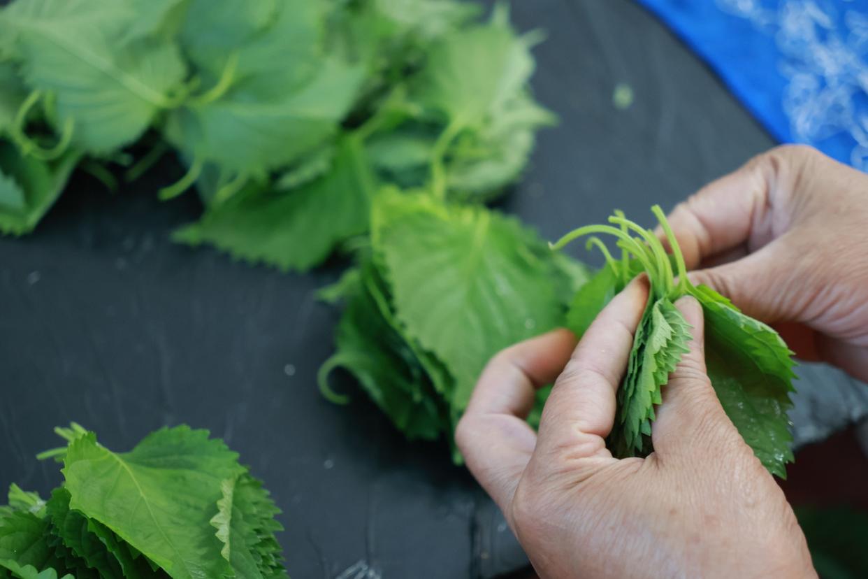 “很多人不认识紫苏叶子,没怎么见过。最初,周边村民都以为是桑叶。”王丽回忆。她已经在基地工作了近10年。现在,村民们都知道,这种叶子比较珍贵,附近也有很多人靠采摘和分拣紫苏叶,获得了一份收入。