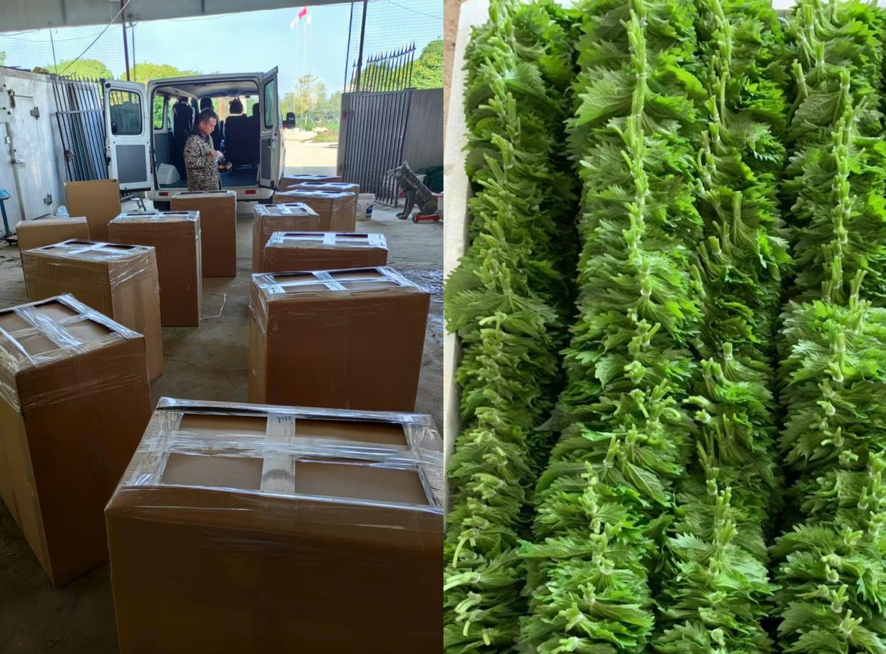 不到24小时,这些叶子就会出现在2500公里外内蒙古火锅店的餐盘里,或1000公里外大连日料店的刺身拼盘上,成为“漂亮饭”里那一抹不可或缺的清新和仪式感。