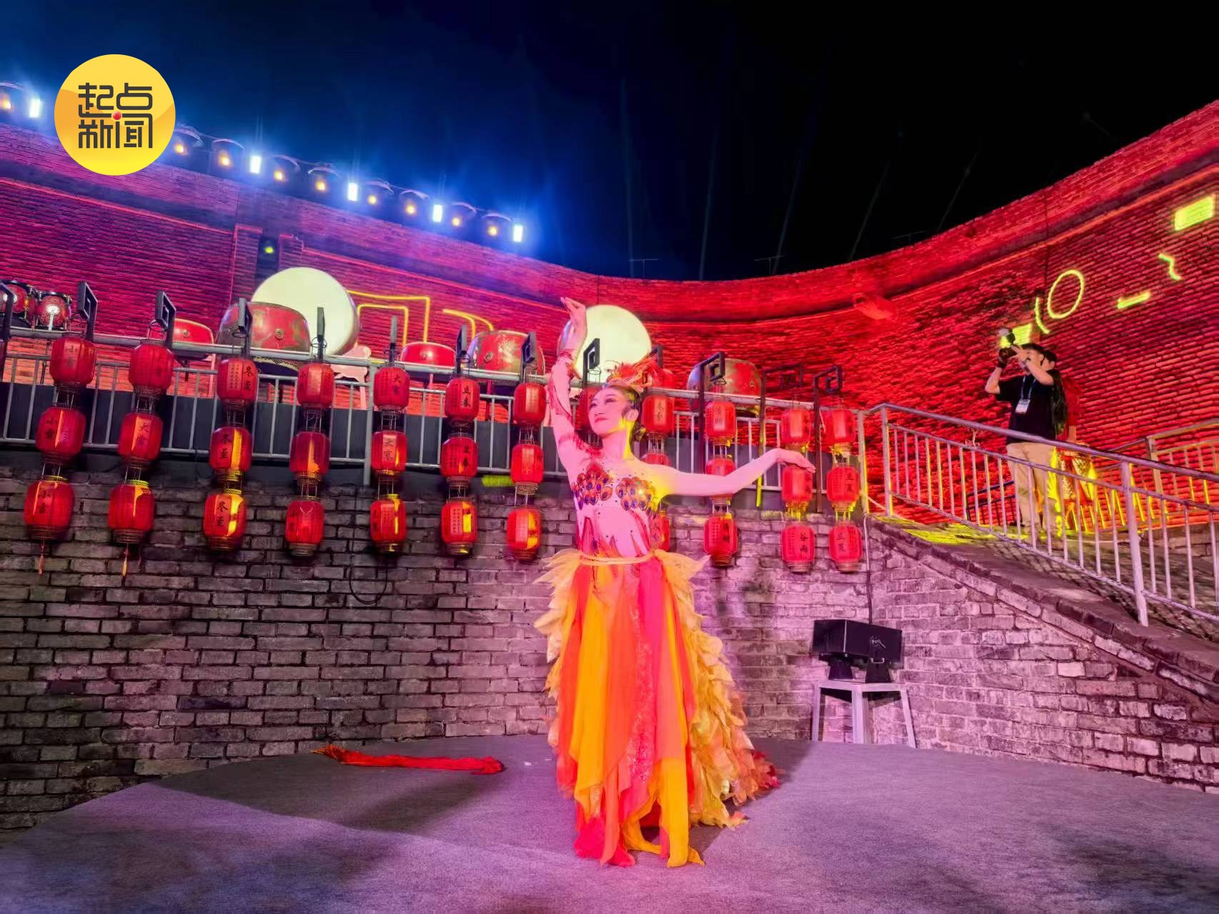 活动以一场7分钟的《凤鼓迎宾》入城仪式拉开帷幕。礼仪官身着特色服饰,伴随凤凰主视觉元素、旗手护卫与宫灯女舞者的表演,吟诵 “ 祥云栖榆塞,星辉映兰台 ” 的欢迎词,盛迎八方宾朋,开启文化盛宴。