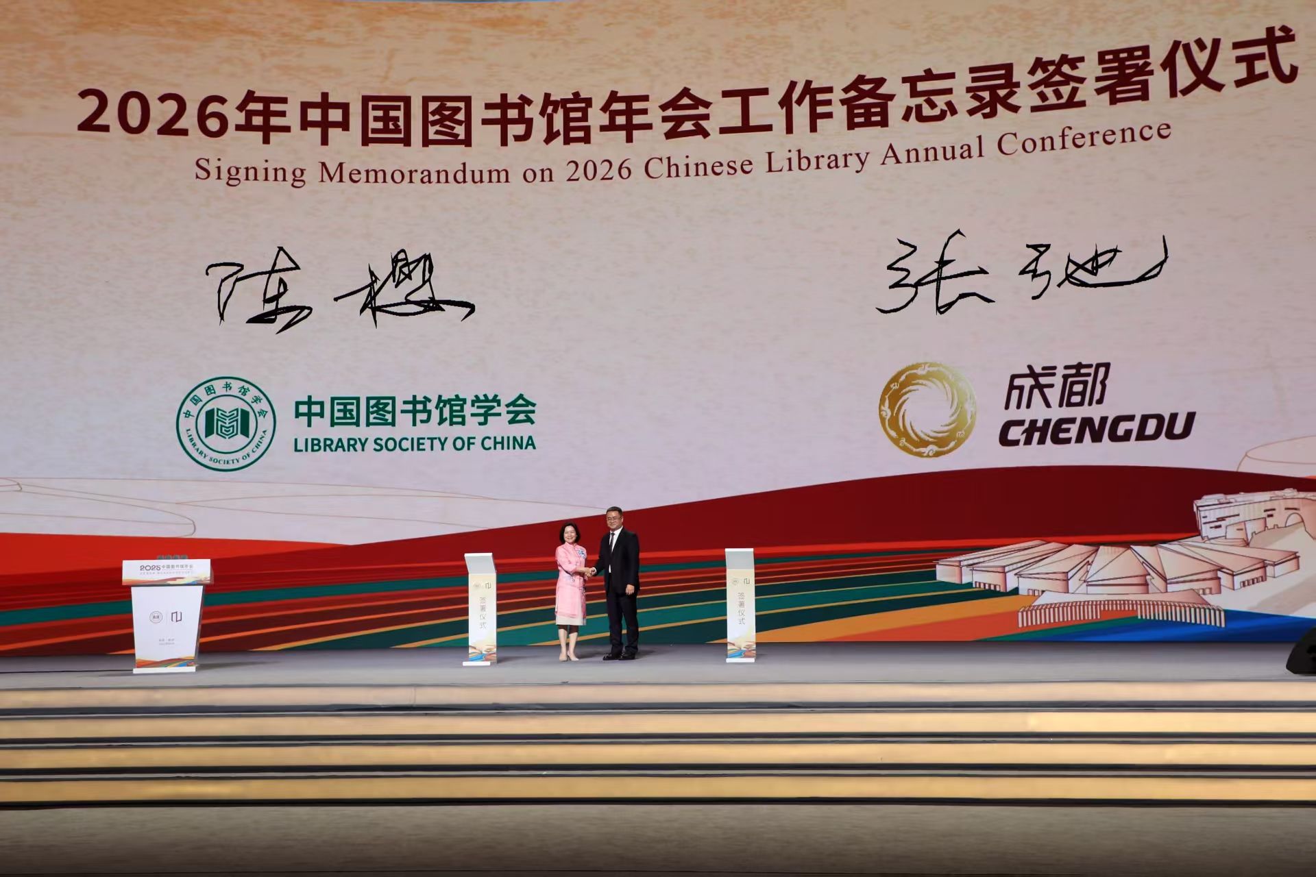 中国图书馆学会理事长、国家图书馆党委书记、副馆长陈樱出席并签署《2026年中国图书馆年会工作备忘录》,榆林市人民政府副市长姬跃飞出席并为入选《2025中国图书馆年会论文集》的作者代表颁发证书。