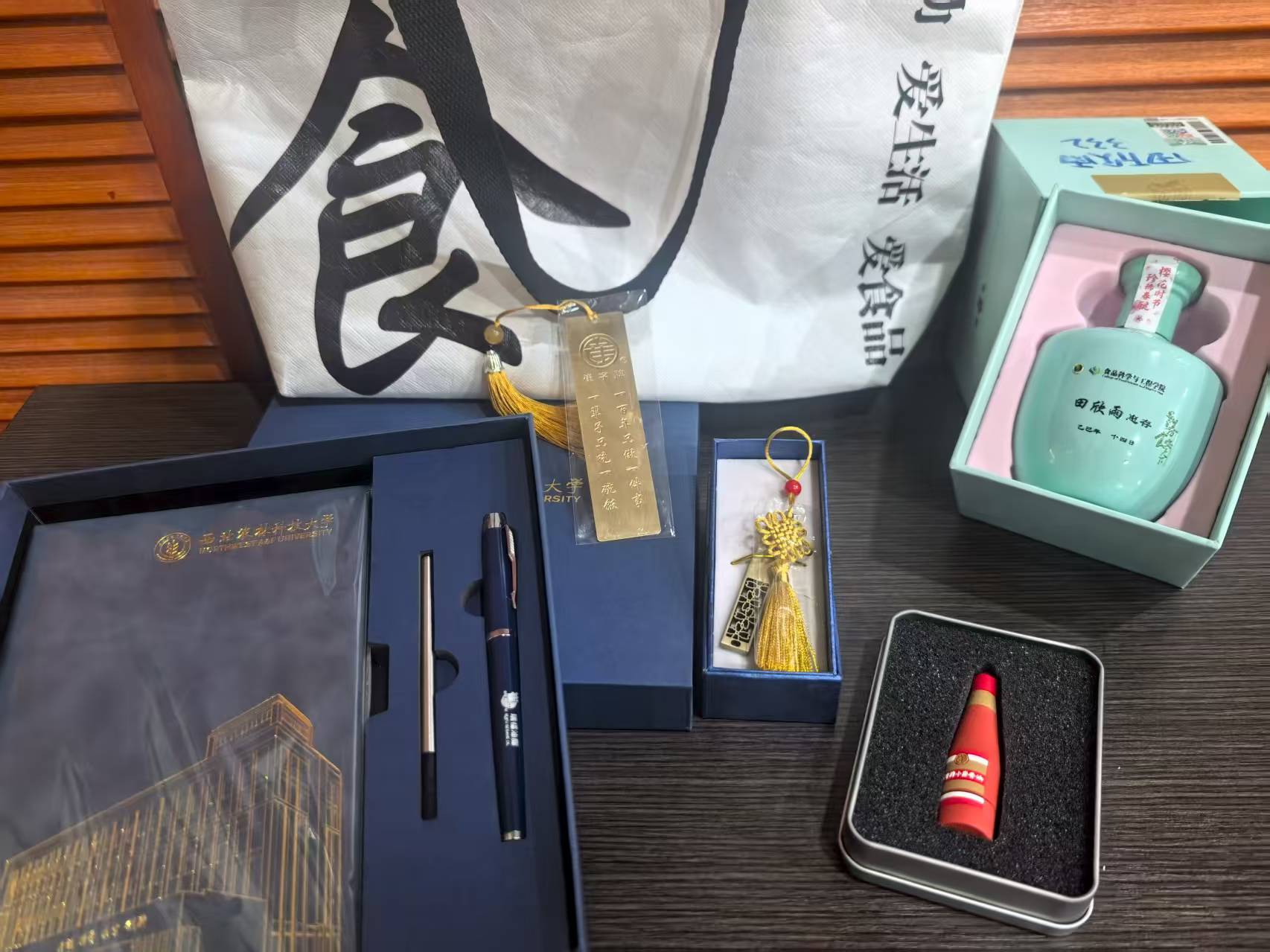 一份精心筹备的新生大礼包,成为迎新环节中的“暖心亮点”。礼包中的金属“良心尺”由学院与瑞福油脂联合打造,尺身镌刻“学食品就是学做人,做食品就是做良心”的箴言,传递出企业“一百年只做一件事”的专注与匠心,让新生理解食品人的初心与责任;校企联合准备的笔记本套装和U盘等礼品,也将瑞福油脂的文化理念融入日常,体现其对食品事业的专注与新生的殷切期待。