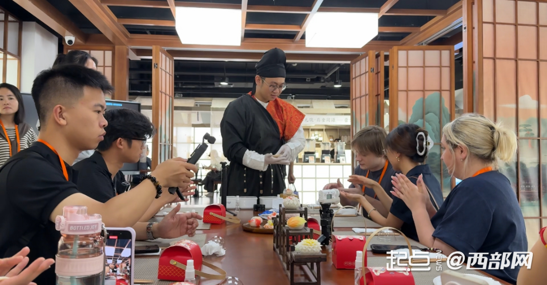 “Amazing!”在华山戏法的表演舞台前,来自埃及的桑英杰连连赞叹,直呼神奇。非遗传承人雷鸣正在表演经典戏法“三仙归洞”。只见他指尖翻飞、动作如电,几颗彩球在瓷碗间倏忽隐现、虚实难辨,传统技法与现代舞台效果相映成趣,采访团的成员们也深切地感受到这项民间艺术的独特魅力。
