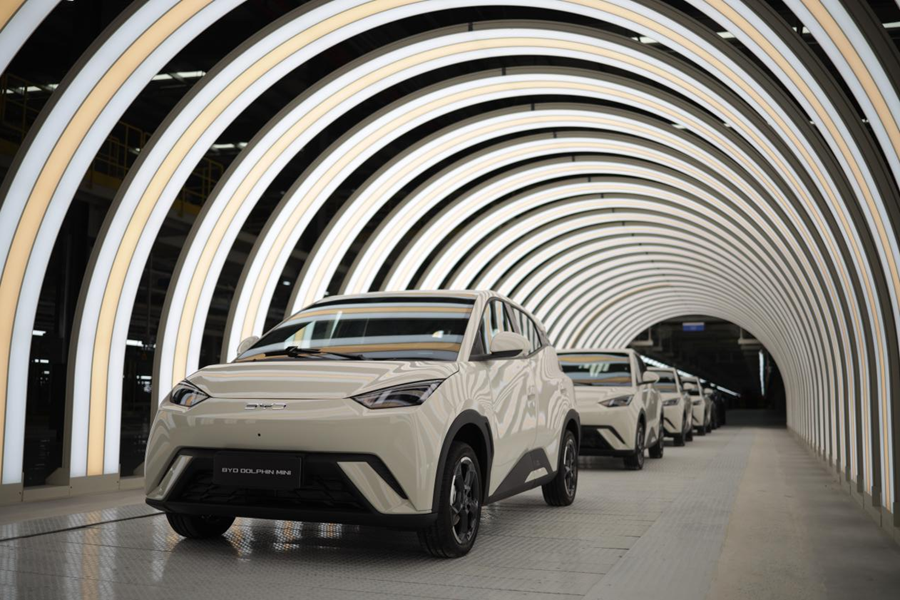 比亚迪首个亚洲以外乘用车工厂在巴西卡马萨里正式首车下线。(资料图)