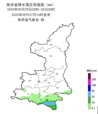 陕北多云间阴天,延安南部局地有小雨(0-5mm),关中、陕南阴天有中雨(5-15mm),西安大部、宝鸡南部、咸阳南部、渭南南部局地、汉中、安康大部、商洛、杨凌示范区有大雨(25-50mm),西安南部局地(长安区、鄠邑区、蓝田县、周至县)、宝鸡南部局地(太白县)、汉中中东部(汉台区、南郑区、城固县、洋县、勉县、西乡县、镇巴县、佛坪县)、安康中北部(汉滨区、汉阴县、石泉县、宁陕县、紫阳县)、商洛部分(商州区、山阳县、镇安县、丹凤县、柞水县)有暴雨(30-50mm)。