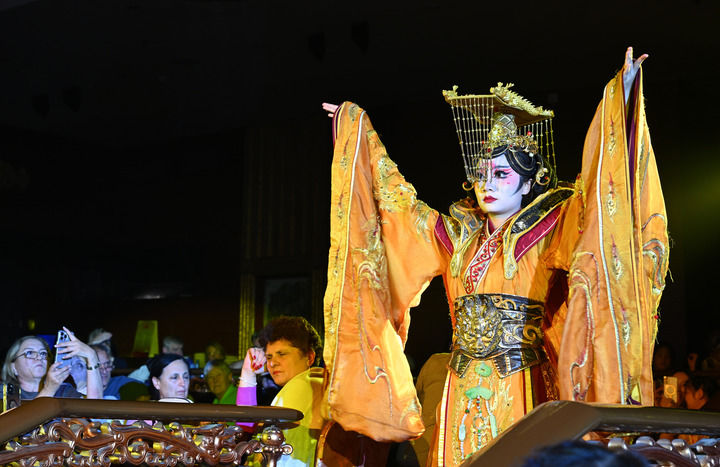 幕布缓缓拉开,号角齐鸣,鼓乐阵阵,雄伟的皇宫映入眼帘。彩色光束洒下,唐韵悠扬,舞姿翩翩,一派盛典的景象徐徐展开。外籍游客纷纷举起手机,记录下舞台上的精美瞬间。