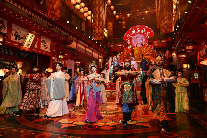 以唐乐宫为代表的舞台剧场,已成为国外游客感知中国的“文化客厅”。西安唐乐宫有限公司总经理王玥介绍,唐乐宫开创的“餐饮+演出”的文旅模式,30多年来已累计演出12000余场,接待全球各地游客1500万人次,今年4月的接待人数创1988年营业以来单月历史新高。