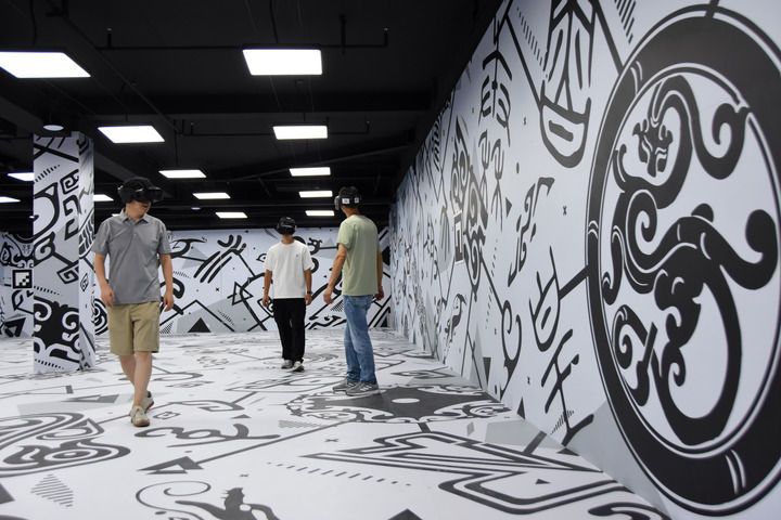 7月29日,游客在《帝国密码——秦始皇陵》全真XR体验空间进行沉浸式探索。新华社发 唐浦萌 摄