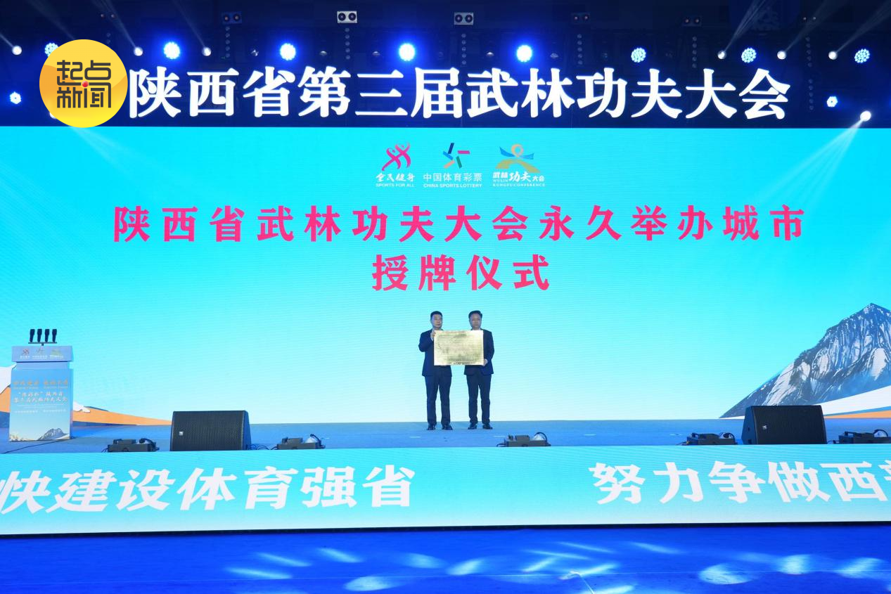 开幕式上举行了授牌仪式,陕西省体育局副局长徐鹏向华阴市授予“陕西省武林功夫大会永久举办城市”牌匾,标志着该项赛事将长期落户华阴,承担起传承与发扬的重任。