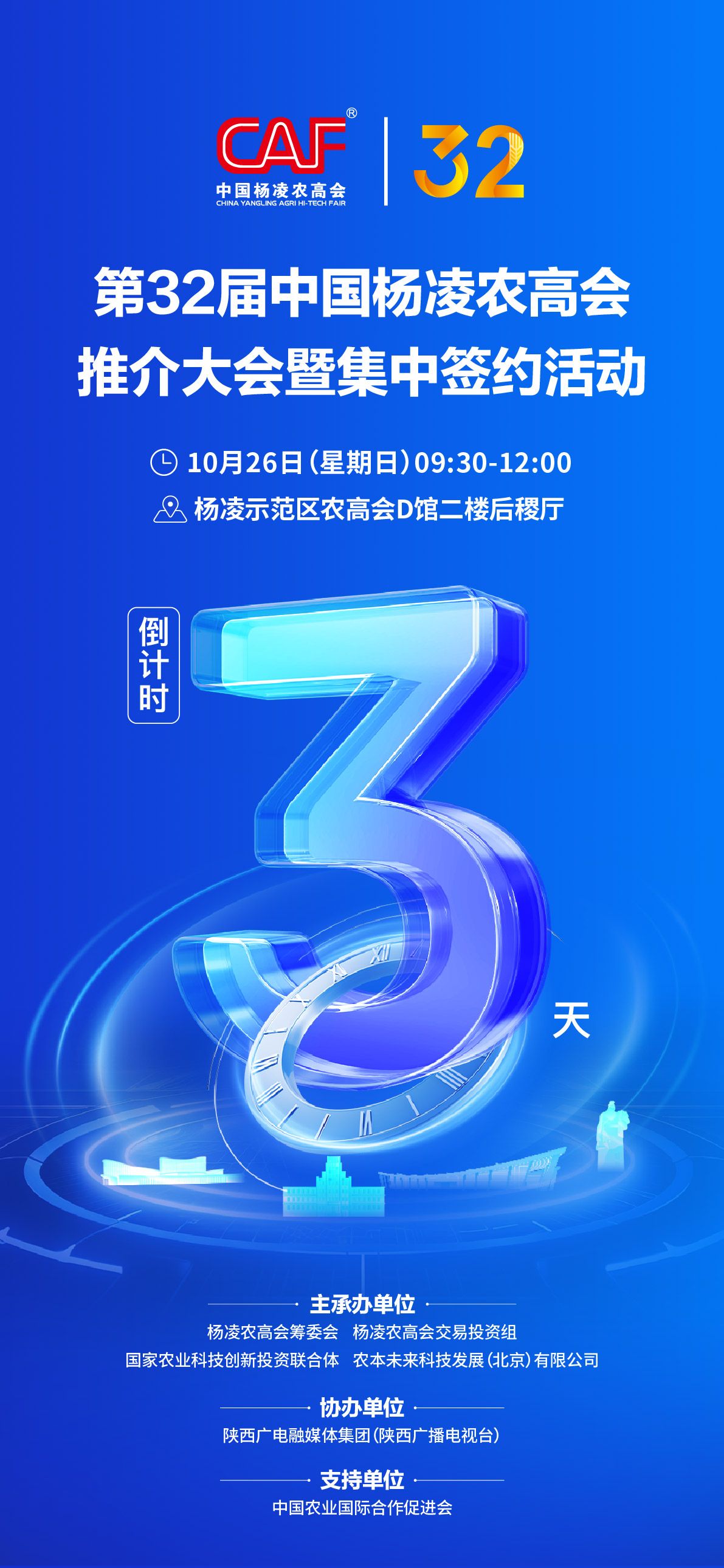 第32届中国杨凌农高会推介大会暨集中签约活动,倒计时3天。