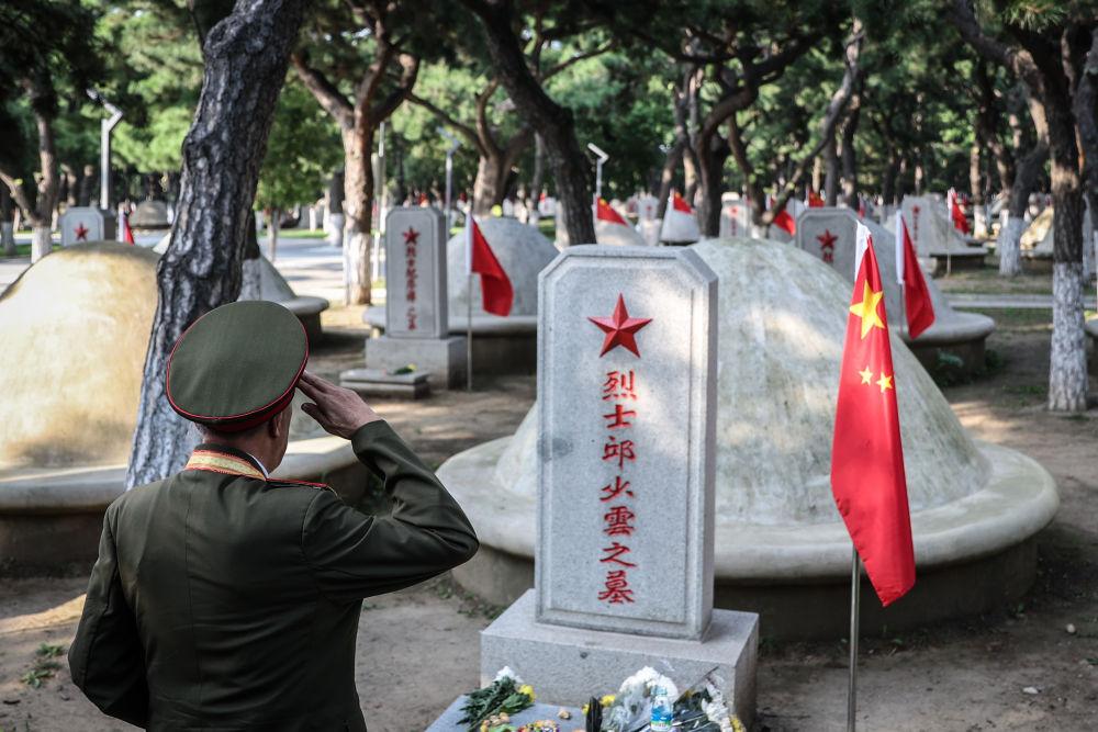 9月10日,抗美援朝老战士向烈士墓敬礼。新华社记者 潘昱龙 摄