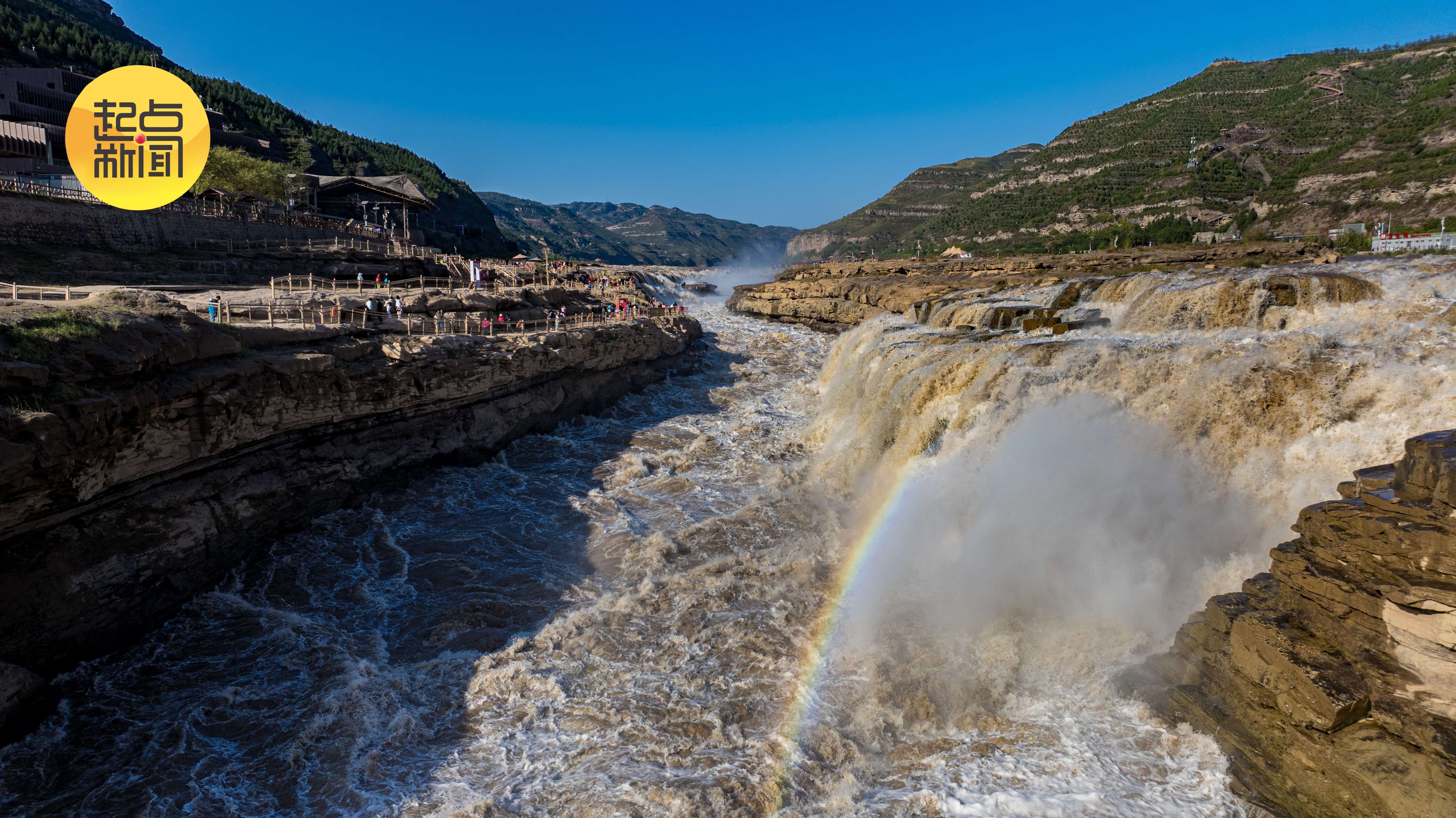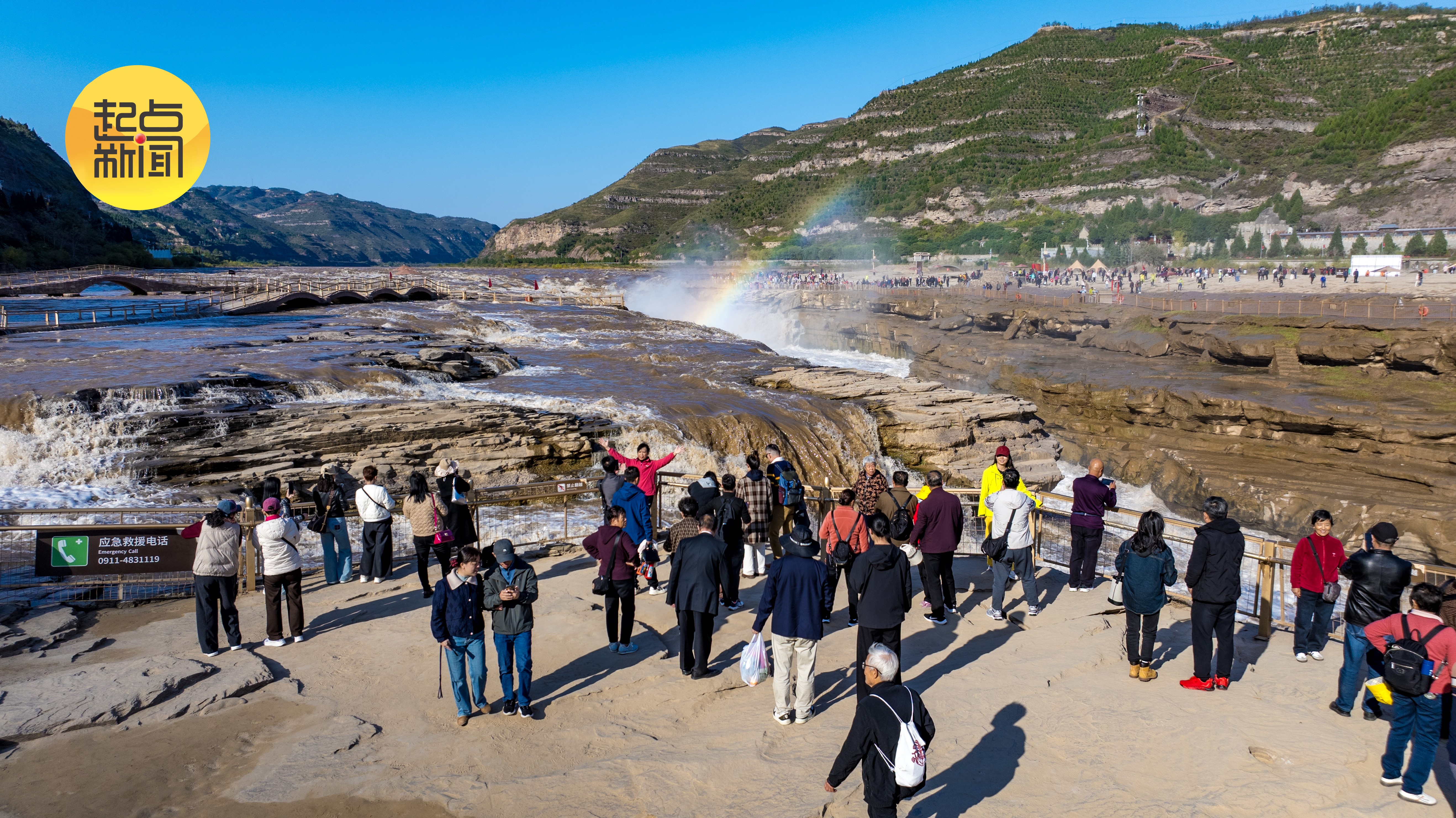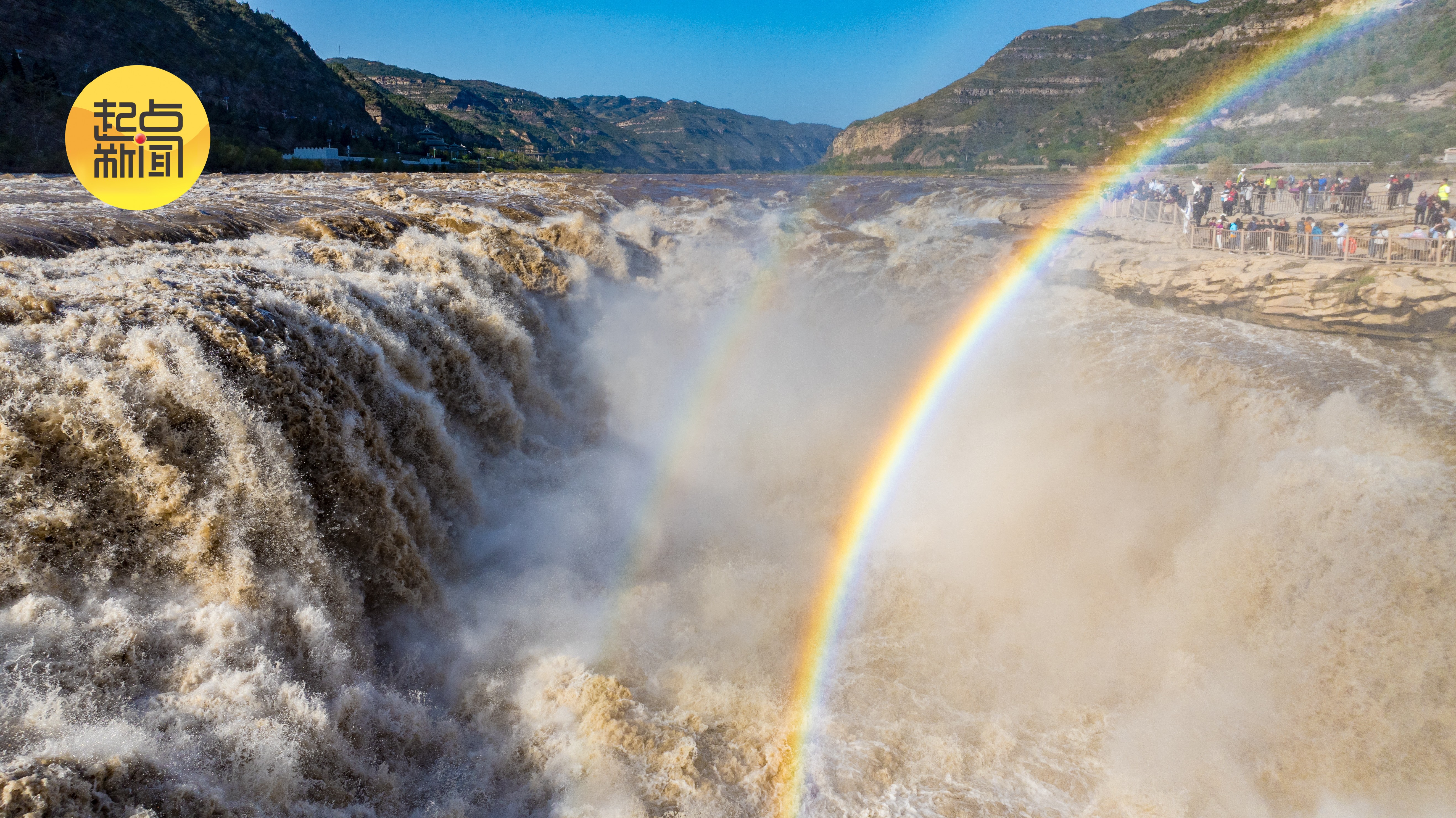 壶口瀑布陕西侧现秋日绚丽双彩虹