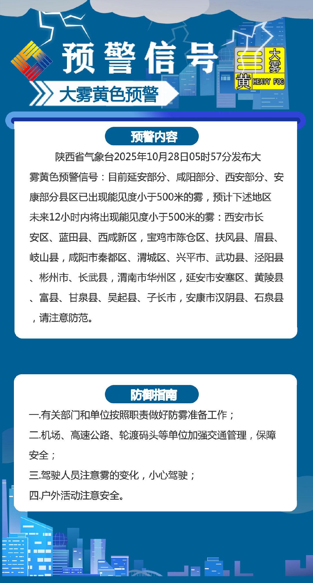 陕西省气象台10月28日5时57分发布大雾黄色预警信号:
