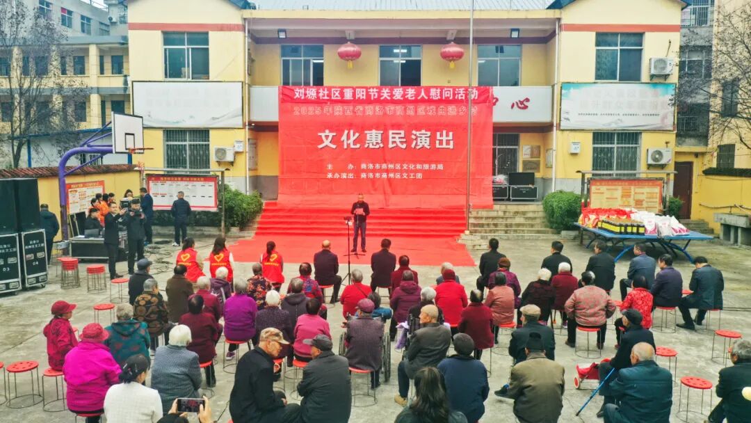 在重阳节来临之际,商洛市商州区大赵峪街道刘塬社区开展关爱老人慰问演出活动,为社区老人送上物质关怀与精神盛宴,让老人们在欢声笑语中度过一个温馨祥和的重阳节。