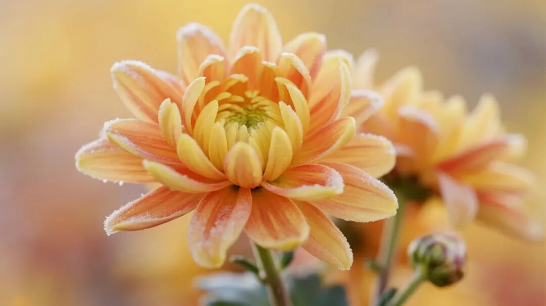 百草由青转黄,菊花灿然盛开
